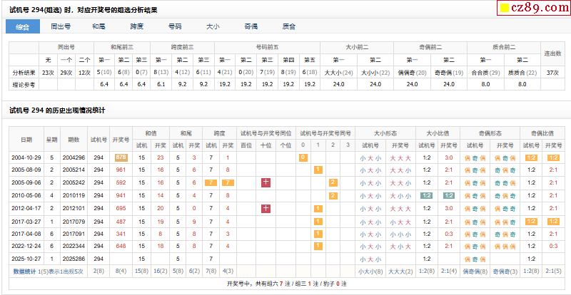 > 286期福彩3D试机号294对应开奖号的组选分析结果