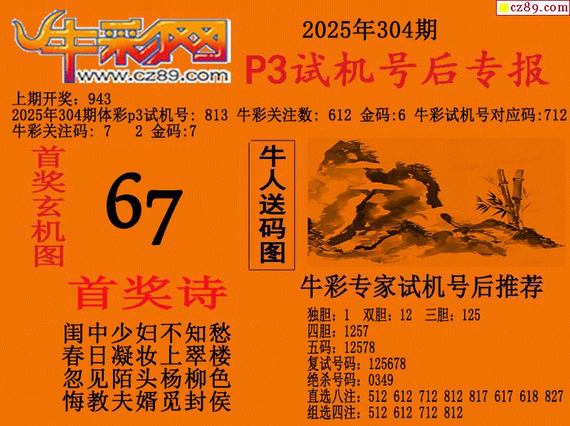 2025304期p3试机号后牛彩网专报