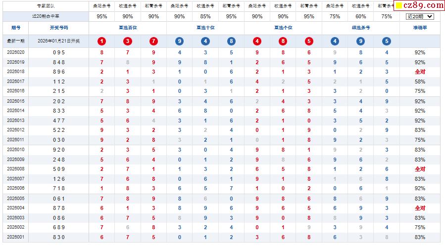 26年021期彩宝贝专家体彩P3杀号定码图表